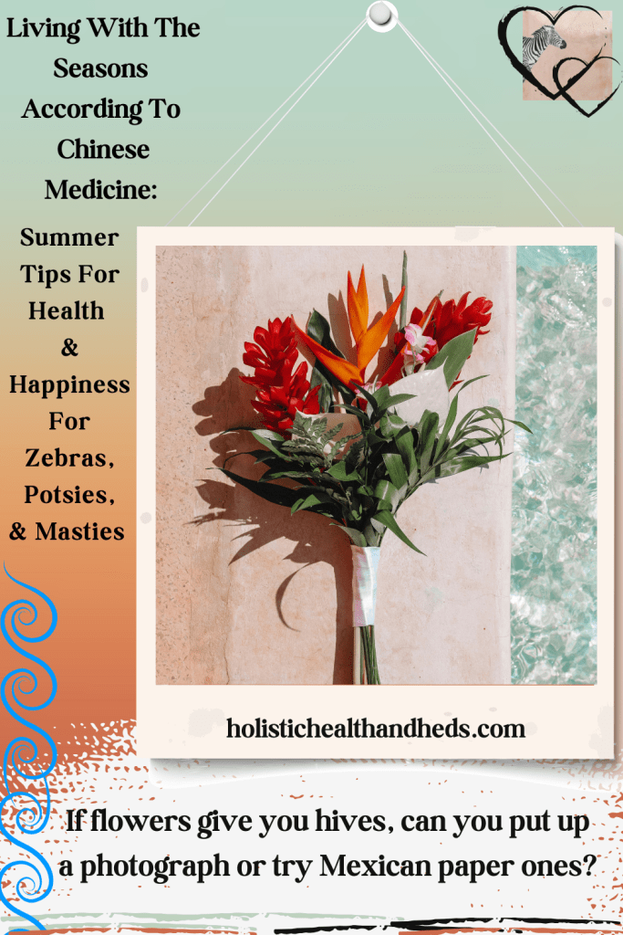 As I wrote in my Two Hearts Wellness blog post, “Living With The Seasons According To Chinese Medicine: Summer Tips For Health And Happiness,” it can be fruitful to consider four main topics. These are: environment, organs, food, and mood. In this post, I’ll be brief with the explanations of these categories (you can go to the original blog post for the more detailed outlines) so that we get right to the topic that may be most important to you: in other words, how to integrate Chinese medicine into your unique self-care practice during hot months.