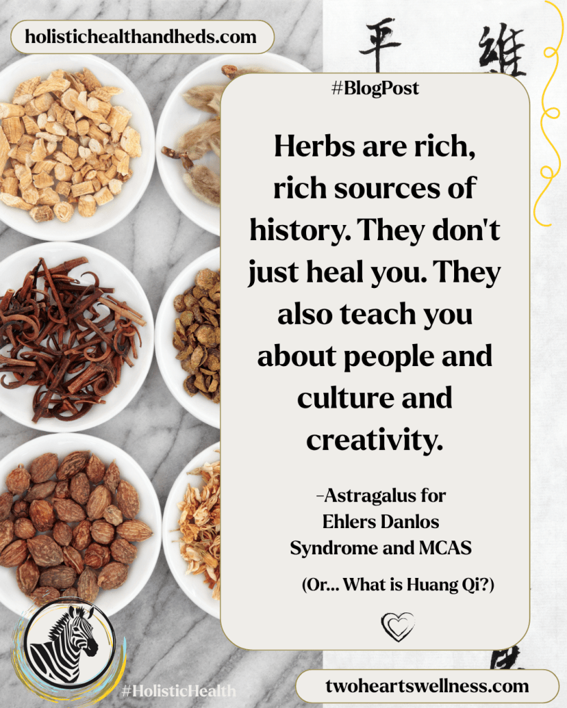 Whatever the story you give it, huang qi was a valued herb then and it is a treasure to this day. I would urge you, dear reader, to also keep in mind its origin and cultural worth. When we live with chronic conditions, we often “try everything.” Many of us begin with over-the-counter drugs, then we move on to Pharma prescriptions, and when the adverse event history becomes overwhelming, we try supplements and herbs and any number of diets and programs. This makes sense, if you ponder it. I mean…what else are you going to do if you live with chronic pain, joint instability, slow digestion, and/or hyper-reaction to all-the-things?