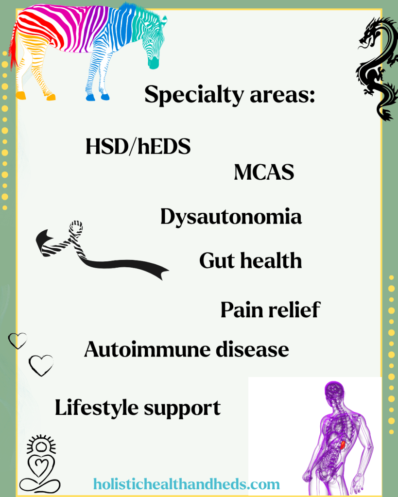 It is important to work with someone who is familiar with EDS, and if at all possible, MCAS.2 Your practitioner of Chinese medicine can offer you acupuncture treatments designed to nurture Spleen health (and we’ll probably attend to the wellbeing of your Liver too). Some of us are more gut health oriented than others (I’m a gut health specialist) and, when we are, we can educate you in the ways of Chinese medicine’s views on nutrition. If you’re ready to work on your gut health, we definitely are a resource. And we also have exceptional herbal options that work. This is especially helpful for those of us (I include myself here) who have an adverse event history when it comes to Pharma drugs.